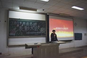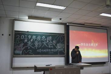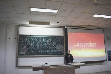 2019年12月27日下午6:30,2019年度总结表彰大会在教1-103隆重召开,出席本次活动的有辅导员于杰老师、团委书记呼延晓蓉老师,各部门部长和全体部员干事。