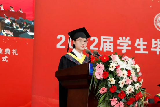 在发言中她回顾了与母校一起经历的高光时刻,表达了对校园生活的恋恋不舍、对母校培育之恩的无限感激以及对这片知识沃土的深深眷恋。她表示,毕业之后,要心怀祖国与人民,不负韶华、不负时代、不负人民;铭记sunbet申搏“敦德励学·知行相长”的校训,通过努力实现价值,通过实践创造美好明天。