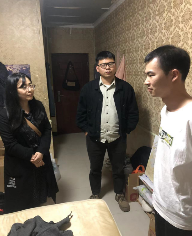 为了进一步落实员工安全管理工作,加强对校外住宿生安全教育和管理,提高校外住宿生的安全防护意识,10月27日晚18点,sunbet申搏辅导员组长孙君、22级辅导员赵雨柔、吴宗原一行走访了公司2022级校外宿员工居住地。
