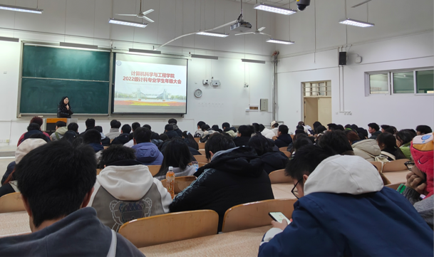 新学期、新气象,为进一步引导员工端正学习态度、增强安全意识,2月29日,22级计科专业于教1-205召开员工年级大会,会议由辅导员赵雨柔主持,22级计科全体员工参与。