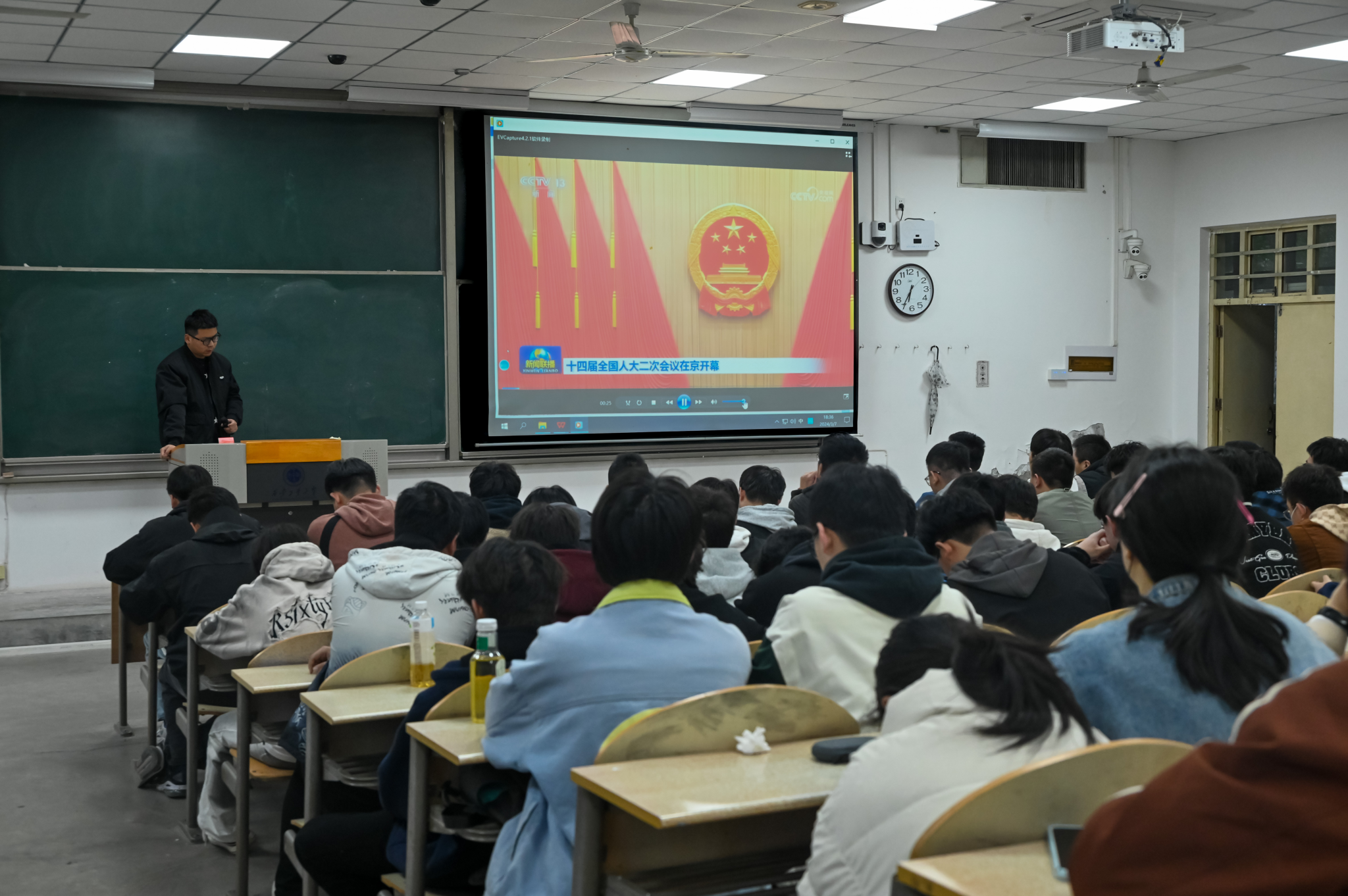 为深入学习贯彻“两会”精神,全方位、多角度把握两会动态,提高老员工的思想觉悟,强化新时代青年的使命与担当,sunbet申搏于3月6日晚18点30分在教1-102组织员工集体观看第十四届全国人大二次会议开幕式并学习2024政府工作报告的主要内容。
