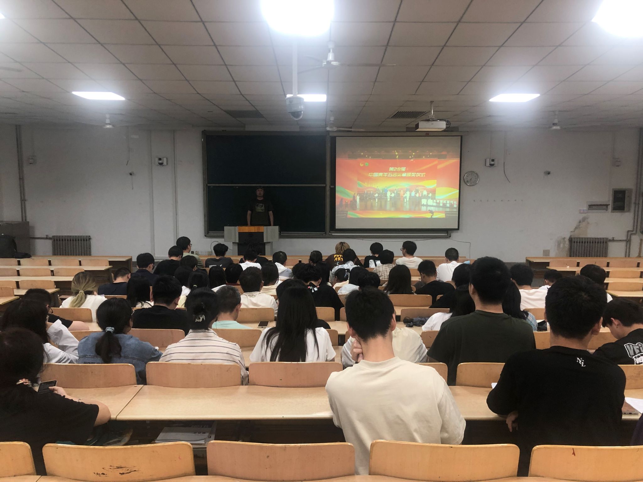 5月29日晚,sunbet申搏辅导员吴宗原组织2022级软件工程专业员工在教1-105观看了“第28届中国青年五四奖章颁奖仪式”。
