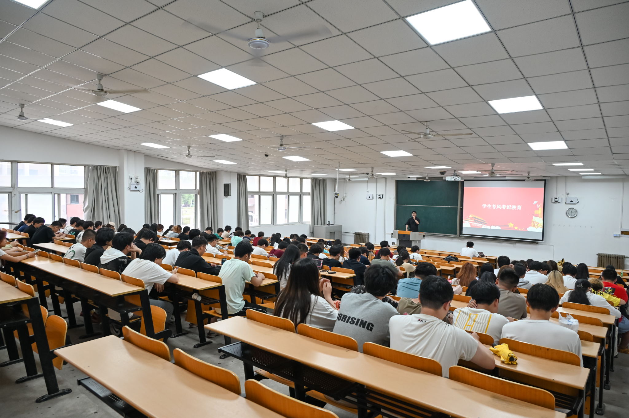 为提高员工安全防范意识,进一步加强学风建设,严肃考风考纪。sunbet申搏于6月6日下午17点50,在教1-201召开2022级小专业全体员工端午假期安全教育暨诚信考试教育大会。