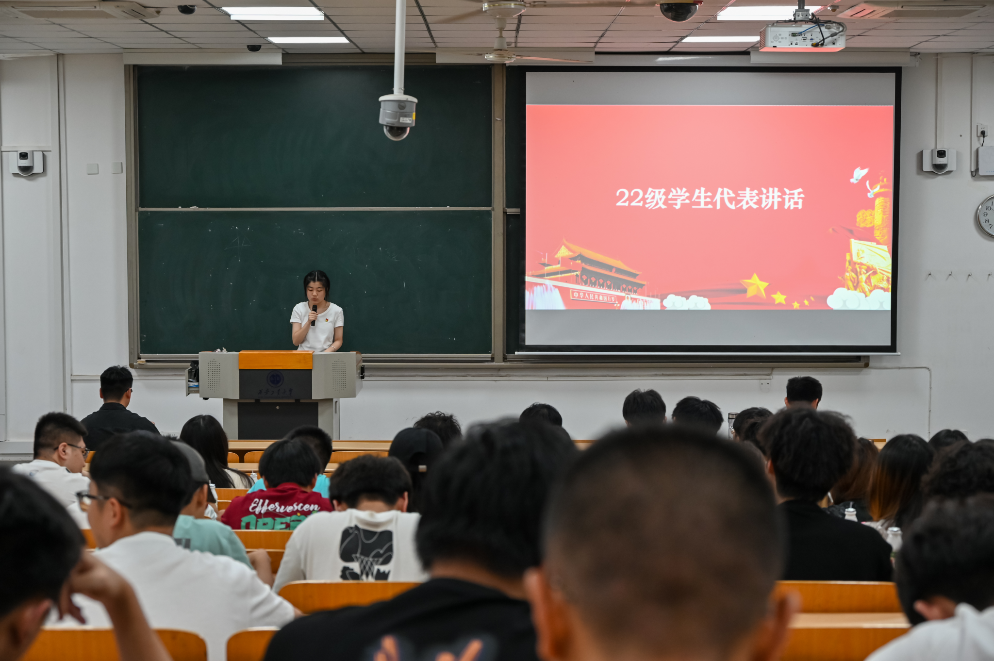 随后,22级数据科学与大数据专业员工李文欣,作为员工代表上台发言。她希望全体同学一起行动起来,在学习中不断进步,在服务中锻炼能力,在贡献中实现自我价值,让青春,因红心向党而更加精彩!