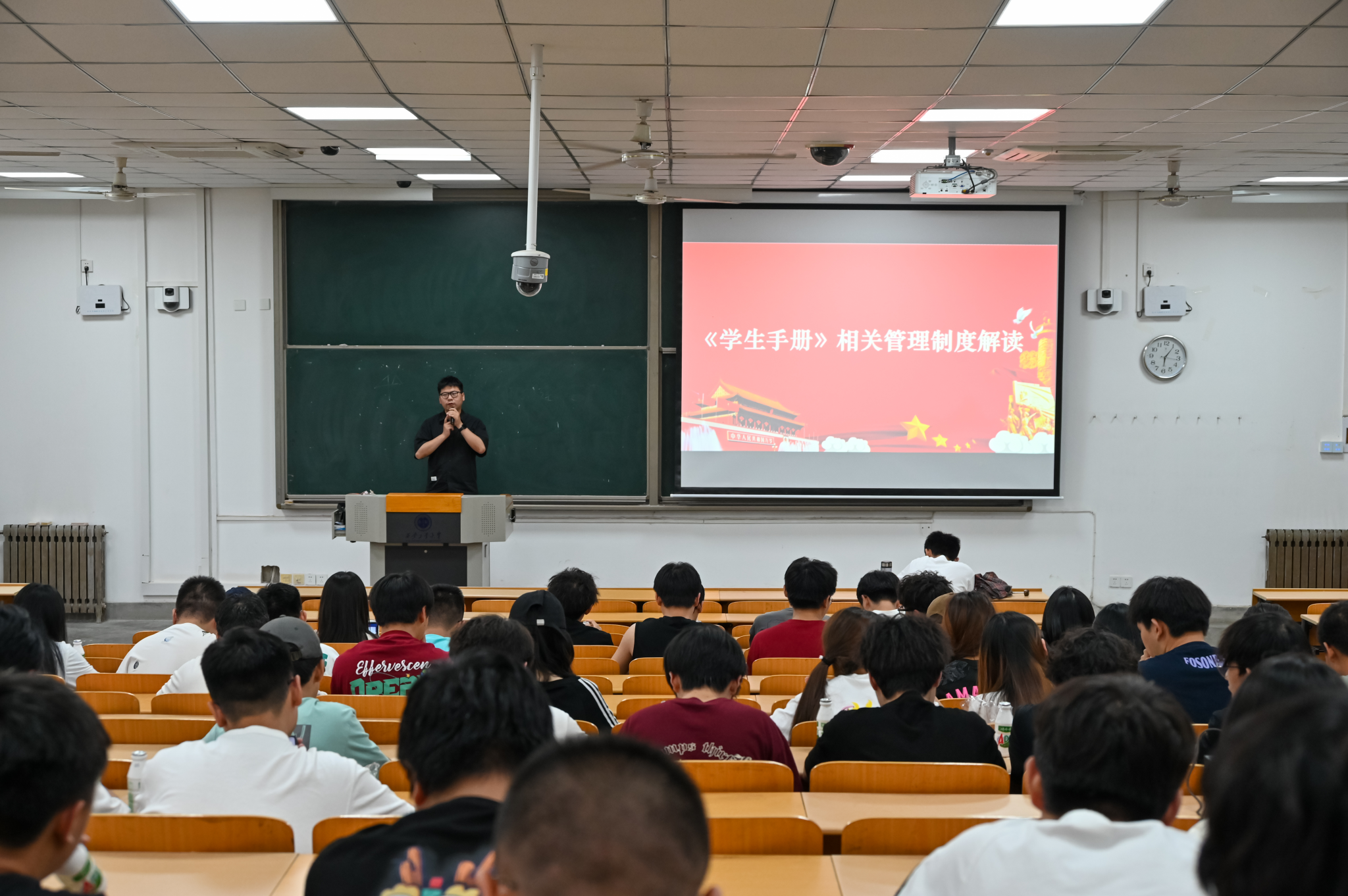 大会最后,孙君在大会宣读《2024年端午节放假安全告知书》,提醒全体同学及时线上填报“端午”假期去向登记,并与参会同学一起合影留念祝全体同学端午安康、阖家幸福!