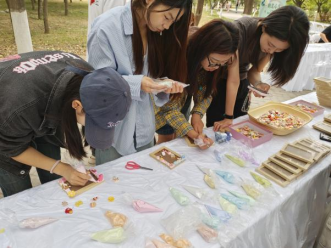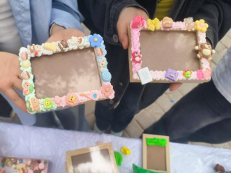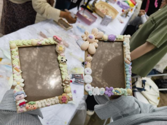 参与者以空相框为画布,自由选择奶油胶勾边、卡通饰品、轻黏土塑形等多元材料进行创作。公司辅导员王梦馨老师全程参与指导,她表示:"通过双手创造美的过程,能有效缓解学业压力。我们特别鼓励理工科同学突破思维定式,在艺术表达中寻找情绪出口。"