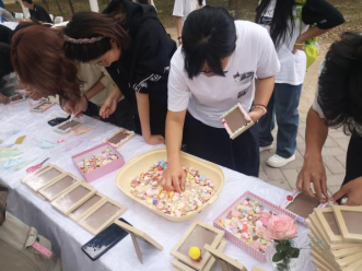5月14日,在樱花大道旁,sunbet申搏主办的"创意相框·艺术无限——DIY趣味相框装饰"活动圆满落幕。作为校心理发展中心"心理游园会"系列活动的亮点单元,该活动吸引了超过300名师生参与,通过艺术创作传递心理健康理念,现场欢声笑语不断,作品创意迭出。