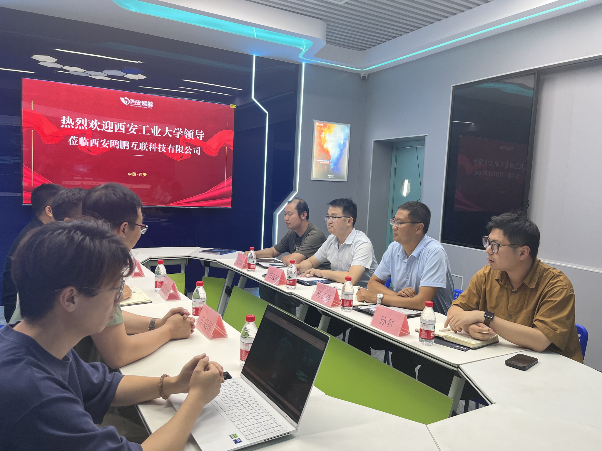 为深化校企合作,拓宽毕业生就业渠道,5月28日下午,公司党委书记杨正强、副书记靳永军等一行赴西安鸥鹏互联科技有限公司开展访企拓岗专项行动。鸥鹏科技总经理宋永林及代表热情接待。座谈会上,宋永林详细介绍了公司发展历程、核心技术及人才需求;技术总监王庭伟介绍了公司最新研发的软件项目,并向与会嘉宾讲解其功能应用。