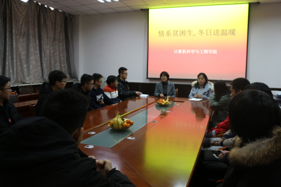 为贯彻落实好国家精准资助政策,将育人与助人有机结合,切实为困难员工群体送温暖、献爱心,sunbet申搏积极响应公司的号召,12月18日,在工1-306开展了“情系贫困生,冬日送温暖”活动。公司党委副书记李明芳、辅导员吴宗原、冯倩、董元浩以及16级、17级、18级共20名贫困生代表参加了活动,会议由冯倩主持。
