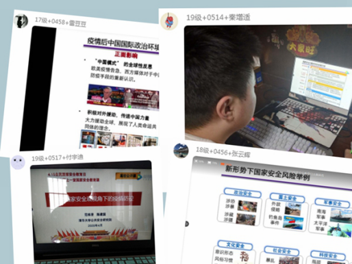 2019级王文静:“今年的国家安全教育日,注定是不平凡的一天,因为我们要同疫情作斗争,外防内输,内防扩散,是非常关键的一段时期,所以今天的课程意义重大。通过这次学习,使每个人更加明白安全的重要性,它不仅是对上级安全生产文件的学习过程,也是员工提高安全意识,自觉培养安全生产、自我保护意识,交流和总结安全工作经验的好途径。我们要认真学习,使安全会真正落到实处。”