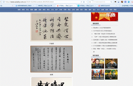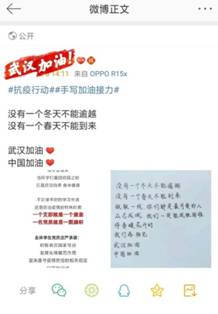 2月3日公司举行了“抗疫特稿”:手写我心!西工师生手动为武汉祝福!公司师生积极参与,解军强老师工作之余有感而发手书自作诗《众志神州》,望与全国人民同舟共济、 共度难关。为武汉加油!中国加油!公司该活动被陕西传媒网等网站报导。