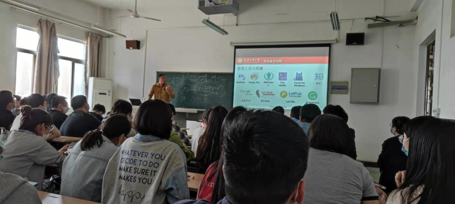 活动邀请2019级周高豪同学进行分享交流。首先为大家介绍了他的学习经历,然后从写作前、写作规划、写作流程以及常见问题四个方面为大家讲述了如何进行学术论文写作,并为大家推荐写作中的实用工具和资源。