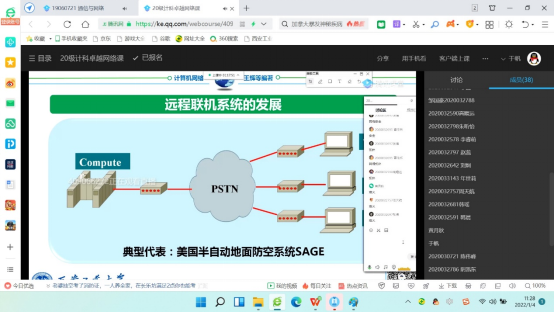 黄姝娟老师使用腾讯会议(356-4618-976)+QQ直播授课,结合学习通建课完成《物联网系统设计与应用》开学第一课的线上授课。她首先介绍了该课程相关内容和考核方法,描述了每章的章节内容和员工作业,展示了实验视频,作业视频等上届员工所做内容,引发员工学习兴趣,期间,和员工互动良好,用QT做动画小车运行演示,员工积极展示自己的成果,并给予共享屏幕展示成果的同学记录课堂分数;此后,通过点名李博文同学,邀请共享屏幕,该员工软件存在问题,及时给予指导调试通过,大大激发了员工动手编程的兴趣。