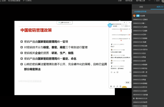 1、杜志强老师《信息对抗技术专业学科前沿讲座》课程:19060315班,应到31人,实到31人,员工与老师有一定的互动,课堂氛围活跃,教学效果优良。