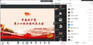 2022年10月21日19点,sunbet申搏员工第一党支部开展“贯彻落实党的二十大精神”党日活动,参会人员有支部书记呼延晓蓉,正式党员、发展对象以及所有积极分子。