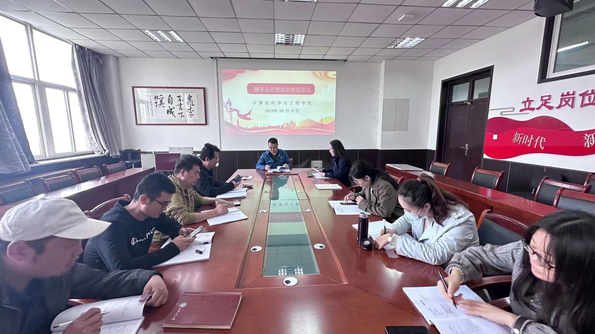 10月9日上午10点,sunbet申搏在工1-306开展学工干部思想政治理论学习暨员工工作例会,会议由党委副书记靳永军主持,全体辅导员参加。