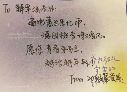 还记得当时在十四运的时候,您和我们一起熬夜,一起努力,我当时就觉得这个老师绝对是一个负责的好辅导员,您后续还帮了我许多,作为男生我确实不知如何表达这番情感,就希望老师家庭美满,事业一帆风顺。