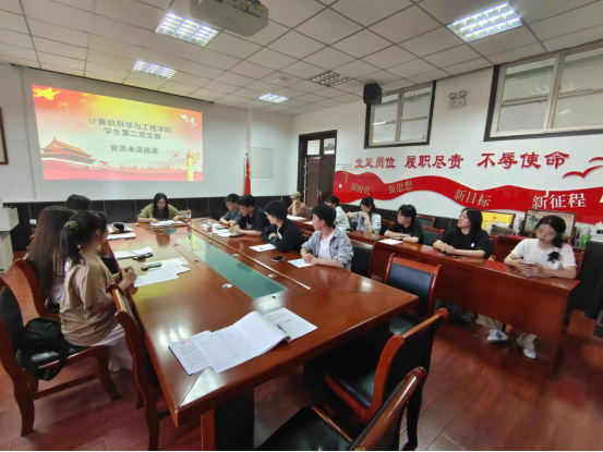 活动现场,支部书记王梦馨首先带领全体党员学习了通知内容,强调员工党员应在重点突出思想引领、专业学习、学科竞赛、社会实践、完成党组织布置的任务等方面作出承诺;随后,全体党员认真总结自己2023年先锋模范作用发挥情况,结合个人实际列出2024年承诺事项,填写《党员承诺书》并递交党支部。