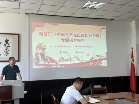 6月13日,sunbet申搏在工一306会议室召开党委理论学习中心组(扩大)学习暨党纪学习教育专题党课,公司党委书记杨正强讲授纪律党课,公司全体党委委员、各党支部书记参加。