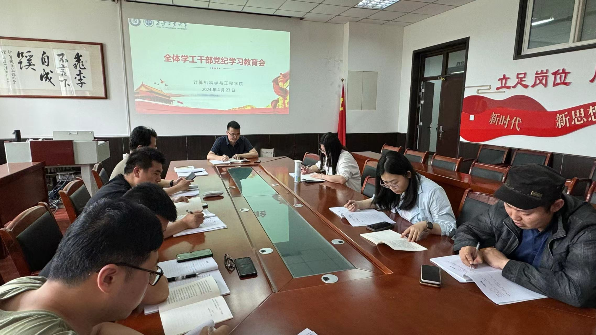 靳永军先带领全体学工干部集体学习《中国共产党纪律处分条例》总则部分。随后,靳永军结合近期员工工作对全体辅导员开展集中约谈,并提出以下要求:一是重视师德师风,严于律己,带头表表率;二是工作严谨认真,坚持程序规范;三是在涉及员工切身利益的工作中,尤其是评奖评优入团入党等工作,一定要遵守公平、公正、公开原则,认真评选;四是要深入员工,关心员工,及时了解员工思想动态,保持“亦师亦友”的师生关系。靳永军强调,各辅导员要高度重视党纪学习教育,提升个人纪律意识、加强自我约束,增强政治定力、纪律定力、道德定力、抵腐定力,始终做到忠诚干净担当;要将党纪学习教育要融入日常、抓在经常,做到学纪、知纪、明纪、守纪,以高质量的党纪学习教育,促进员工工作高质量发展。